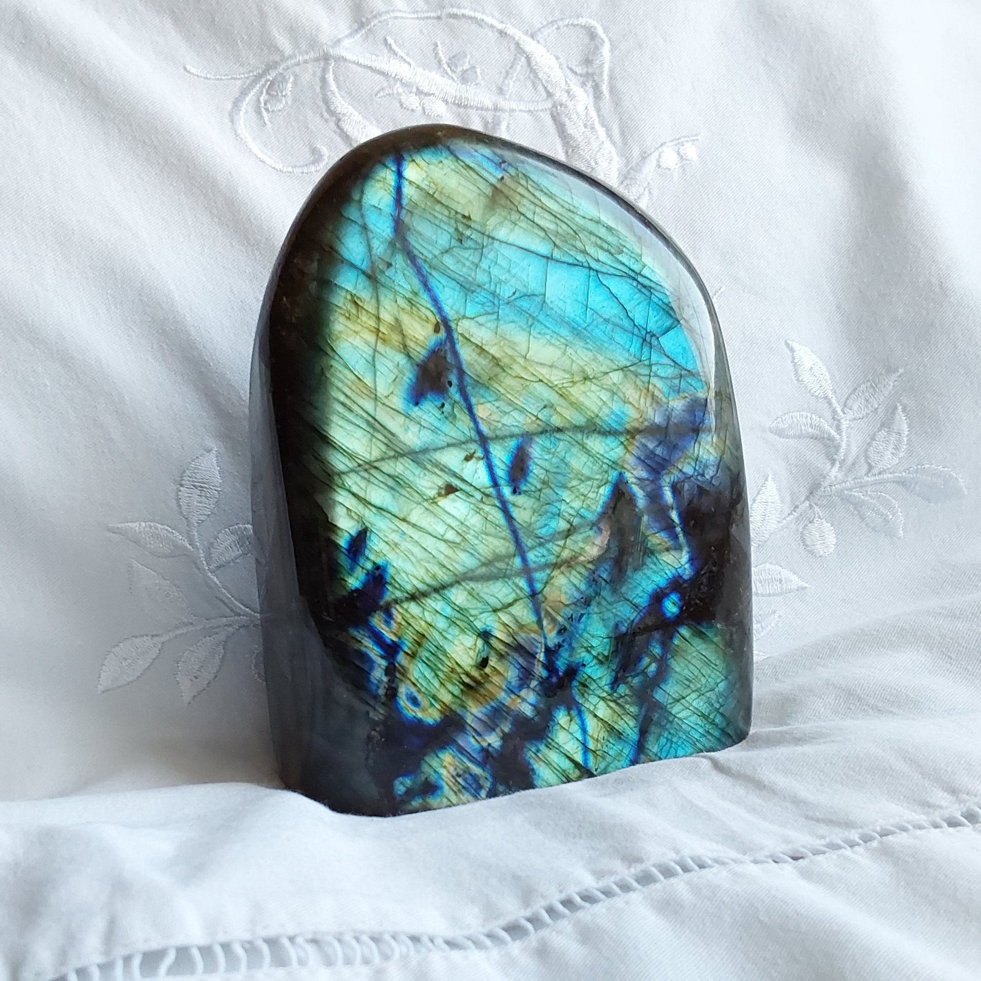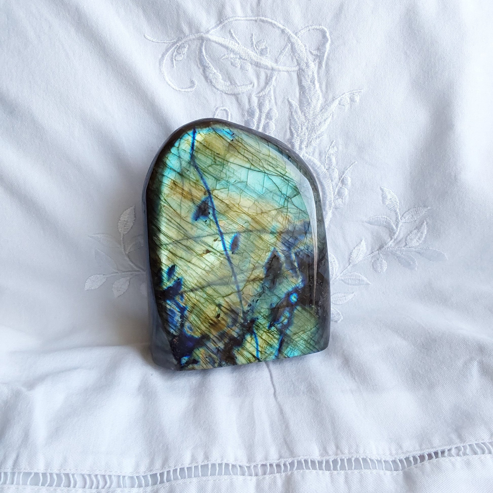 Pierre de protection puissante, la labradorite agit comme un bouclier énergétique, idéal pour les véritables thérapeutes et les personnes sensibles.