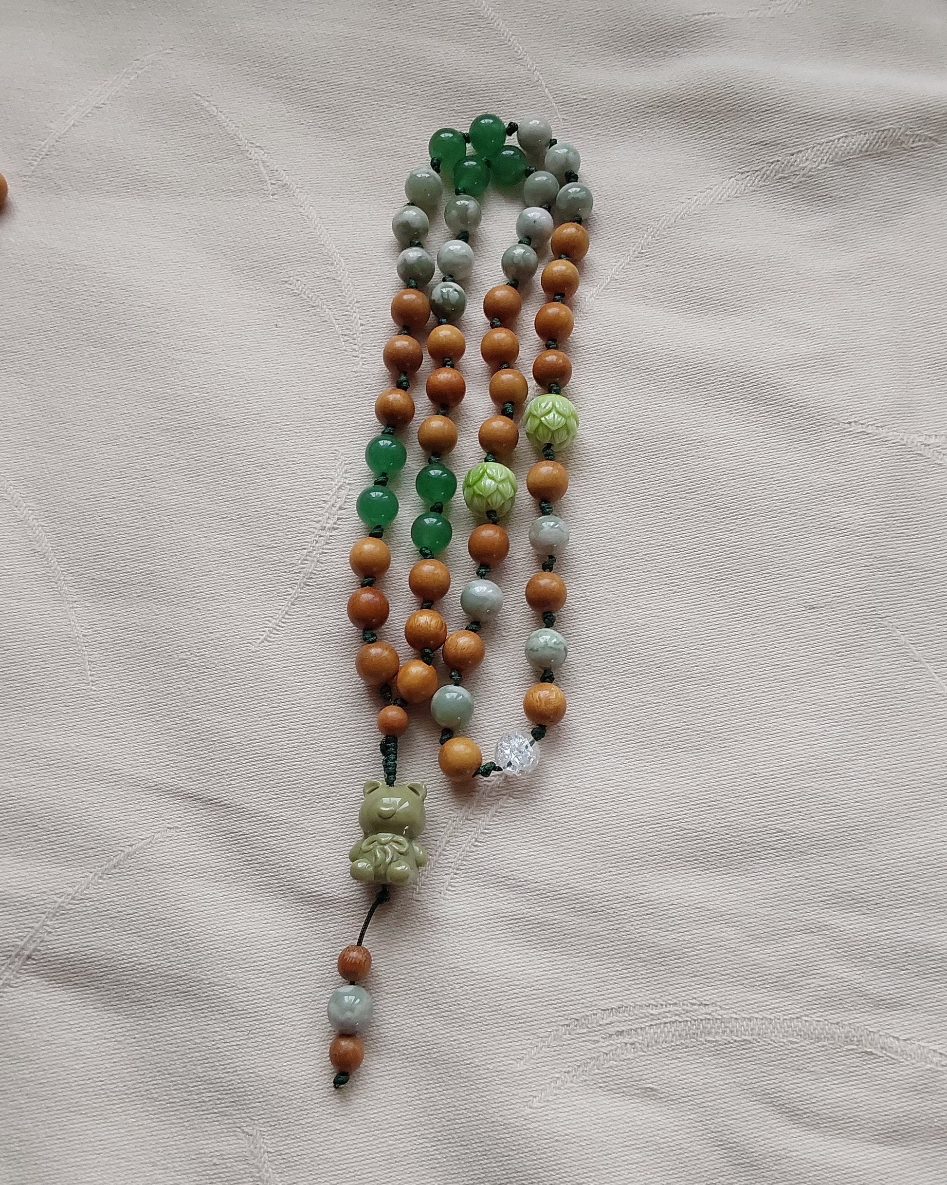 - Éviter le contact avec l'eau afin de préserver le bois de santal et le fil.