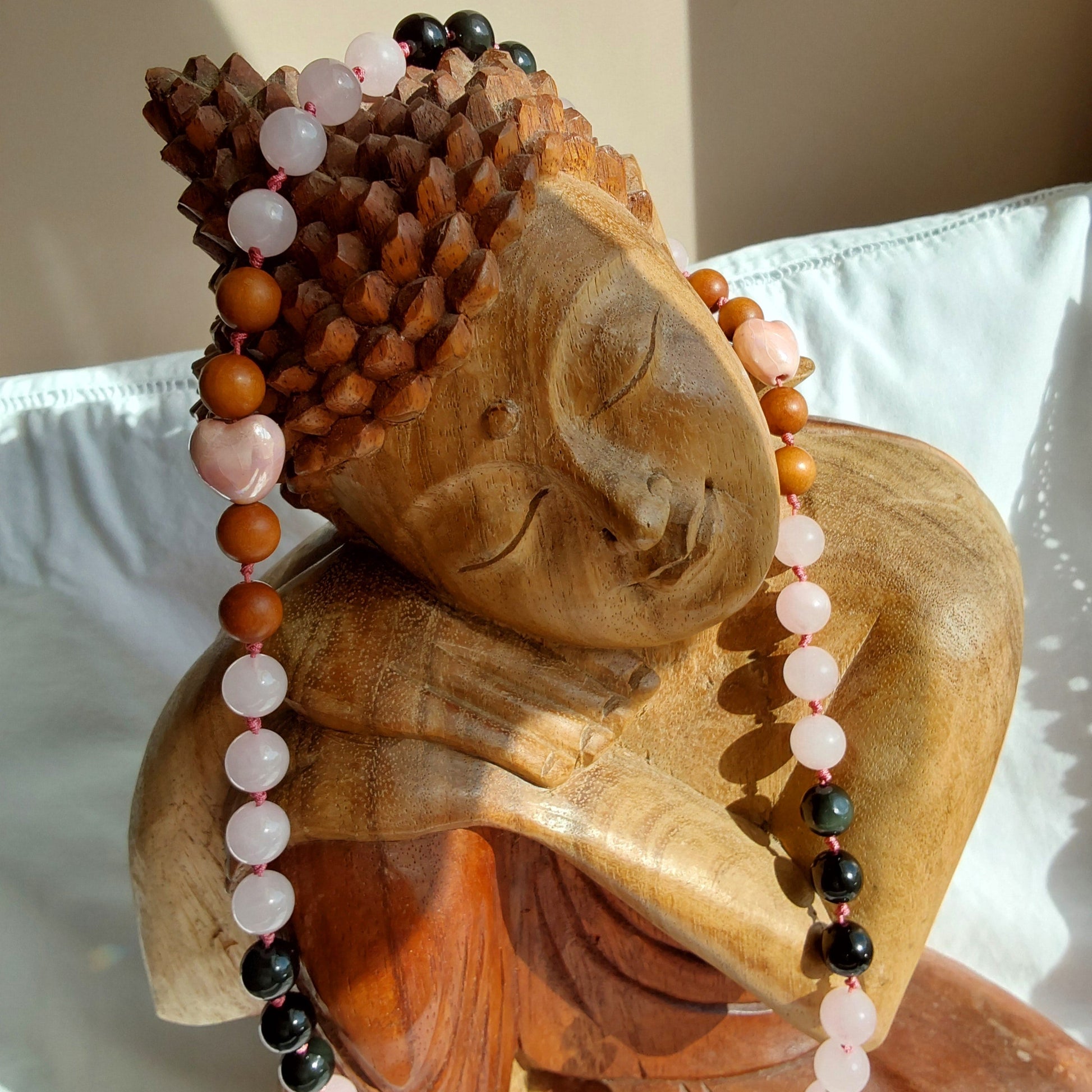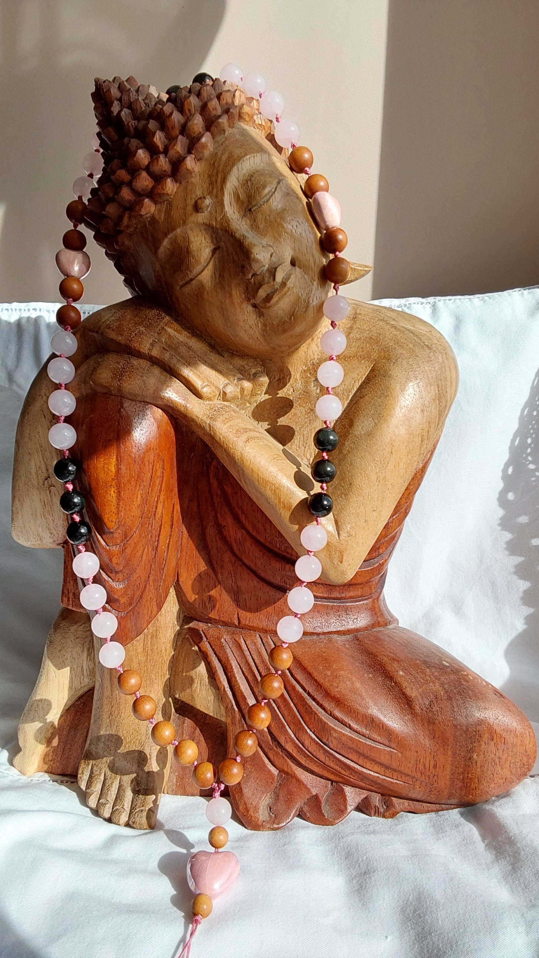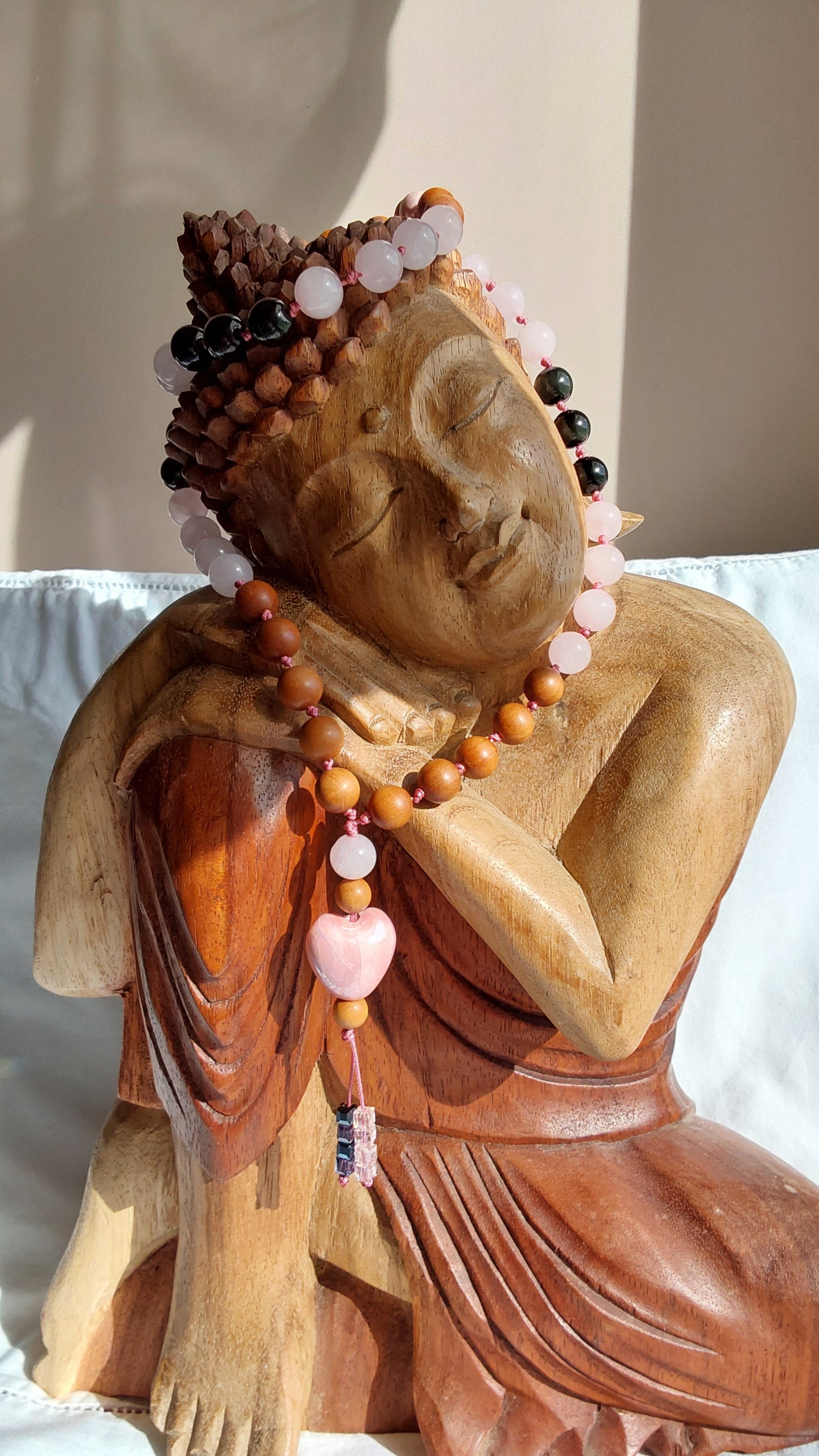 Ce mala en perles de 10 mm honore les larmes versées et celles retenues, en les transformant en perles de lumière.