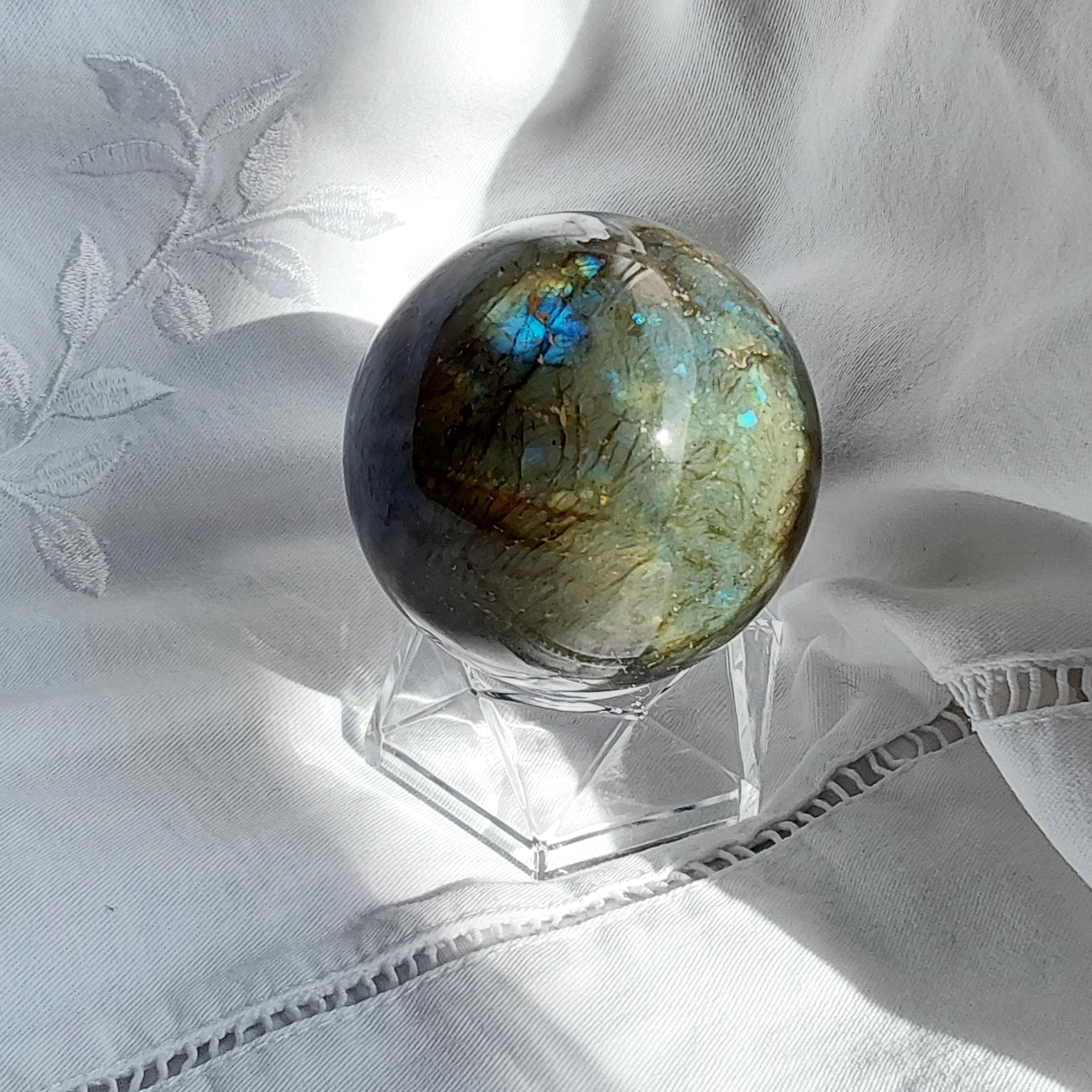 Pierre de protection puissante, la labradorite agit comme un bouclier énergétique, idéal pour les véritables thérapeutes et les personnes sensibles.