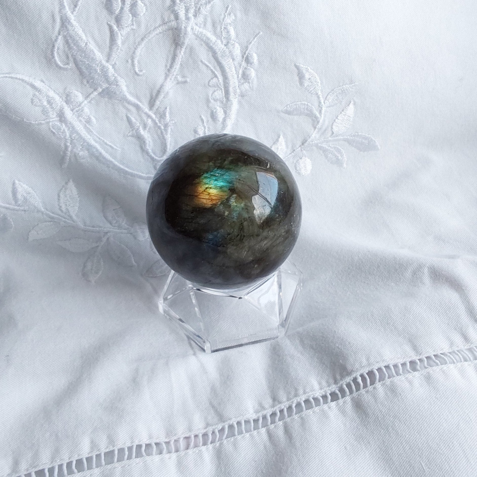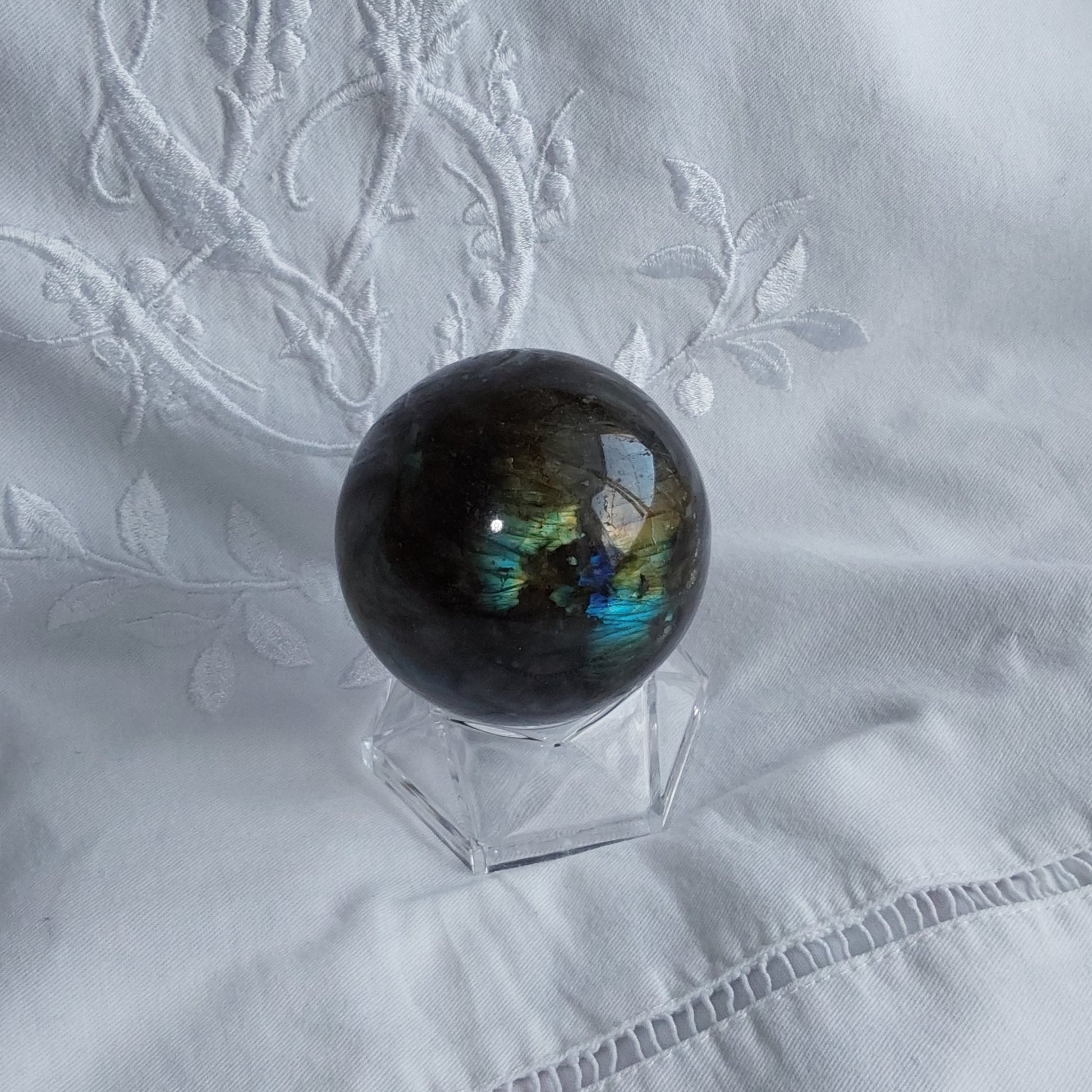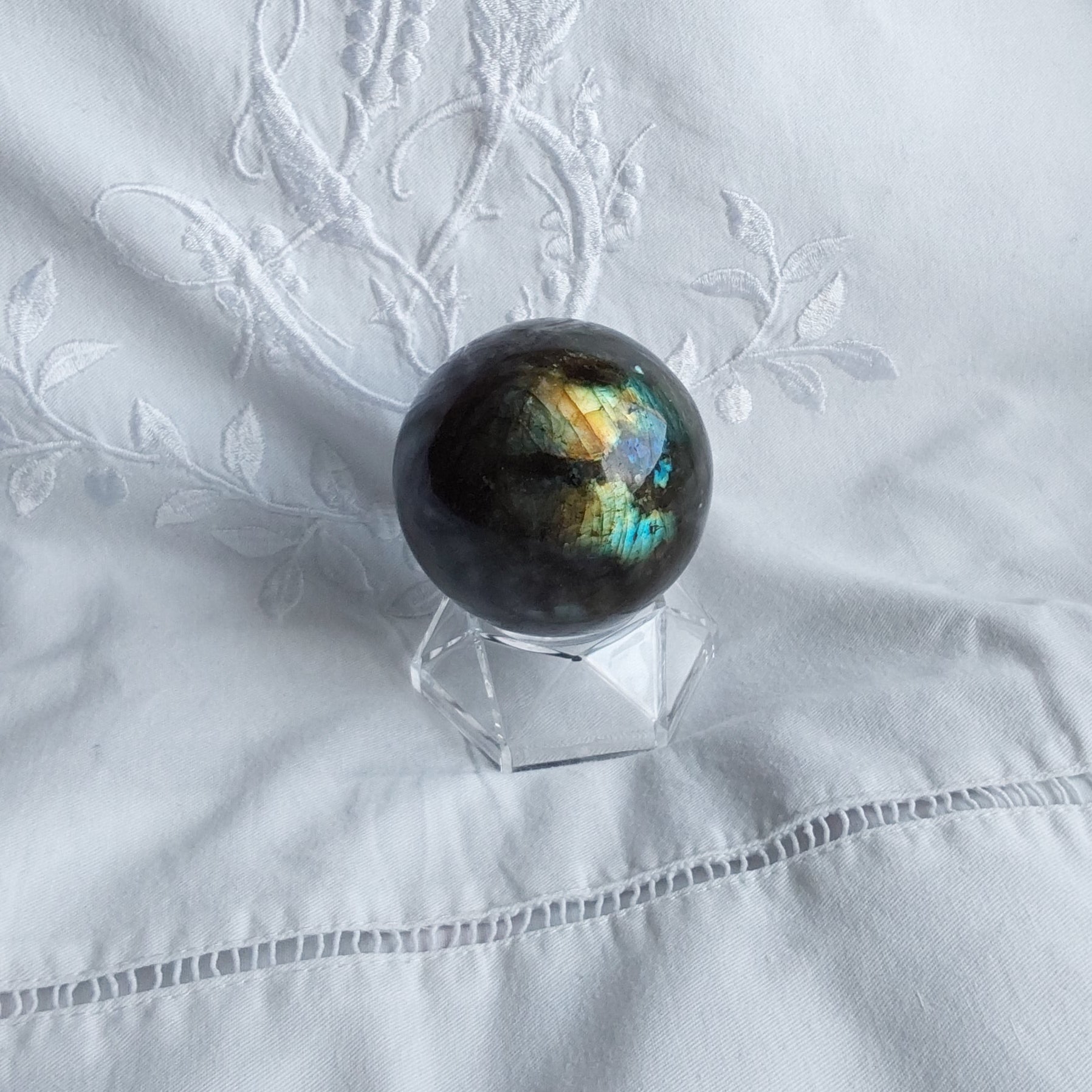Pierre de protection puissante, la labradorite agit comme un bouclier énergétique, idéal pour les véritables thérapeutes et les personnes sensibles.